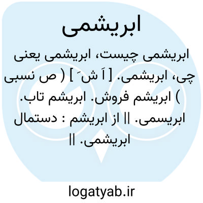 ( صفت ) منسوب به ابریشم. ۱ - ابریشم فروش. ۲ - ابریشم تاب. ۳ - ( اسم ) ( مستحدث ) غلافی از لاستیک و مانند آن که برای حفظ از سرایت امراض مقاربتی آلت رجولیت را بدان پوشانند کاپوت. یا دستمال ابریشمی. دستمال بافته از ابریشم.