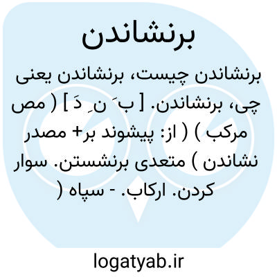 وگرنه مرا برنشاندی بگاه.فردوسی. || سوار اسب کردن: طاهر او را... خلعت داد و برنشاند سوی برادر فرستاد. ( تاریخ سیستان ). غازی سه بار دیگر زمین بوسه داد و سپاهداران اسب سپهسالار خواستند و برنشاندند. ( تاریخ بیهقی ). || به مجاز، آماده و مهیای حرکت کردن: رسول را برنشاندند و آوردند. ( تاریخ بیهقی ص 290 ). رسول و خادم را برنشاندند. ( تاریخ بیهقی چ ادیب ص 376 ). || جای دادن. قرار دادن. متمکن ساختن. بر تخت نشاندن. در جای بزرگان نشاندن: