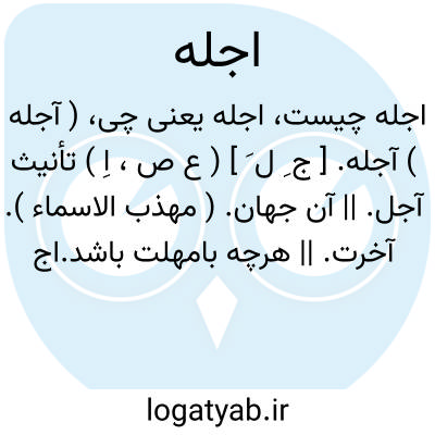 ( آجله ) آجله. [ ج ِ ل َ ] ( ع ص، اِ ) تأنیث آجل. || آن جهان. ( مهذب الاسماء ). آخرت. || هرچه بامهلت باشد.