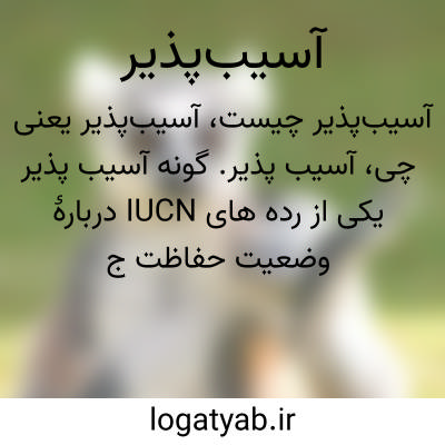 آسیب پذیر. گونه آسیب پذیر یکی از رده های IUCN دربارهٔ وضعیت حفاظت جانوران است که یک رده پایین تر از در معرض خطر و یک رده بالاتر از نزدیک تهدید قرار دارد. برچسب گونه آسیب پذیر به آن معنا است که در صورتی که وضعیت گونه مورد بررسی و عوامل تهدیدکننده آن بهبود نیابند، گونه در آینده در معرض خطر خواهد بود.
