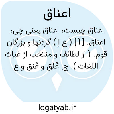 اعناق. [ اَ ] ( ع اِ ) گردنها و بزرگان قوم. ( از لطائف و منتخب از غیاث اللغات ). ج ِ عُنُق و عُنق و عُنَق، بمعنی گردن ومهتران و پاره ای از خیر. ( منتهی الارب ) ( ناظم الاطباء ). ج ِ عُنُق و عُنق، گردن. ( آنندراج ). ج ِ عُنُق و عُنق، بمعنی عضوی که فاصله میان سر و تن است. ( از اقرب الموارد ). گردنها. ( یادداشت بخط مؤلف ): الکلام یأخذ بعضه باعناق بعض و بعنق بعض. ( از اقرب الموارد ). و فی الحدیث: المؤذنون اطول الناس اعناقاً؛ ای اکثرهم اعمالاً... ( منتهی الارب ) ( ناظم الاطباء ):