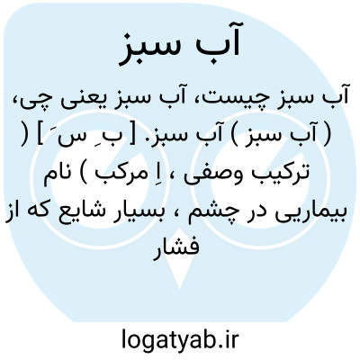 ( آب سبز ) آب سبز. [ ب ِ س َ ] ( ترکیب وصفی، اِ مرکب ) نام بیماریی در چشم، بسیار شایع که از فشار درونی چشم پدید آید.