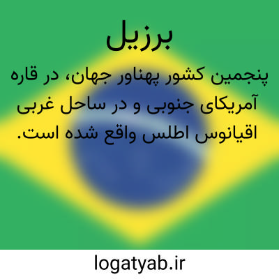 از بزرگنرین و پر جمعیت ترین کشور های آمریکای جنوبی که وسعت آن بالغ بر ۸۴۸۳۱۶۹ کیلو متر مربع و جمعیت آن در حدود ۱۱۵۴٠٠٠٠٠ تن است. پایتخت آن [ برازیلیا ] است. از شهر های مهم و پر جمعیت سائوپولو رسیف سالوادور پورتوالگر بلوهوریزنت بلم. رود خانه عظیم آمازون و شعبش در آن کشور از مغرب و کوههای غربی آمریکای جنوبی سر چشمه گرفته و به طرف مشرق جریان می یابد و وارد اقیانوس اطلس میشود. برزیل دارای جنگلهای وسیع و انبوه منطقه استوایی ( کائوچو سلولز صمغ نباتات روغنی و طبی ) مزارع قهوه پنبه نیشکر چای و منابع سر شار معدنی و صنایع فلزی و مکانیکی و نساجی و کاغذ سازی است که همه در حال توسعه و ترقی است. حکومت این کشور اکنون جمهوری است و دوره ریاست جمهور ۵ سال است. برزیل دارای دو مجلس سنا و شوری می باشد. مذهب مردم کاتولیک و پرتستان و بزبان پرتغالی تکلم می کنند.
