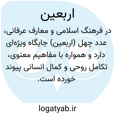 (اَ بَ ) [ ع. ] (اِ. ) ۱ - چهل، چهلم. ۲ - چله، چهل روزی که صوفیان در گوشه ای نشسته به ریاضت و عبادت پردازند. ۳ - چهلمین روز درگذشت شخص. ۴ - چهل روز بعد از روز عاشورا، بیستم ماه صفر.