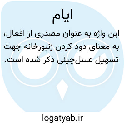 ایام در منابع لغت عربی، معانی متعددی را در بر میگیرد. در وجهی از معانی، این واژه به عنوان مصدری از افعال، به معنای دود کردن زنبورخانه جهت تسهیل عسلچینی ذکر شده است. همچنین، در متون قدیمیتر، این واژه در معنای «دود» به کار رفته است. علاوه بر این، ایام به عنوان اسم و اشاره به نوعی «بیماری مخصوص شتران» نیز تعریف شده است که نیازمند مراجعه به مدخلهای دیگر است.