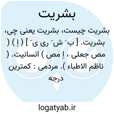 (بَ شَ یَّ ) [ ع. ] ( اِ. ) ۱ - وضع یا کیفیت بشر بودن. ۲ - نوع انسان، مجموعة انسان ها. ۳ - منش یا رفتار انسانی، انسانیت.