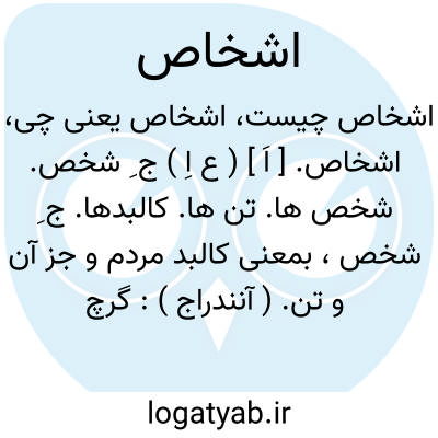 اشخاص. [ اَ ] ( ع اِ ) ج ِ شخص. شخص ها. تن ها. کالبدها. ج ِ شخص، بمعنی کالبد مردم و جز آن و تن. ( آنندراج ):