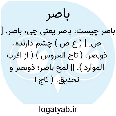 باصر. [ ص ِ ] ( ع ص ) چشم دارنده. ذوبصر. ( تاج العروس ) ( از اقرب الموارد ). || لمح باصر؛ ذوبصر و تحدیق. ( تاج العروس ). نگاه تیز. ( ناظم الاطباء ) ( آنندراج ) ( منتهی الارب ). اریته لمحا باصراً؛ ای: نظراً بتحدیق شدید. ( ناظم الاطباء ). || در مکتب حکمت اشراق که ابصار یا دیدن را به روش دیگری تعبیر می کنند و نظریه های خارج شدن شعاعی از چشم و برخورد آنها با مبصرات یا انطباع صورت شیئی در رطوبت جلیدی و جز اینها رارد می کنند و برای دیدن، نبودن حجاب میان باصر و مبصر را کافی میدانند باصر را سرچشمه نور اسپهبدی می دانند و می گویند هنگام مقابله مستنیر با عضو باصر برای نفس علم اشراقی حضوری بر مبصر حاصل میشود و ادراک «دیدن » روی میدهد. شیخ اشراق ( سهروردی ) در ذیل عنوان «حقیقت صور مرایا و تخیل » آرد: همچنانکه همه حاسه هابیک حس بازمی گردند که حس مشترک است، همه نورها در نور مدبر به نیروی واحدی باز میگردند که عبارت از ذات روشنایی فیاض لذاته است و هر چند ابصار مشروط به مقابله با بصر است جز اینکه در باصر نور اسپهبدی است... اصحاب عروج برای نفس مشاهده صریح کاملتری از آنچه برای بصر دست میدهد آزموده اند و آن هنگام انسلاخ شدید نفس از بدن است. ( از حکمت اشراق ص 213 ). و رجوع به فهرست همان کتاب در ذیل ابصار و باصر و بصر شود.