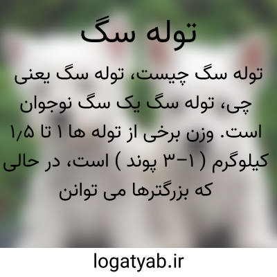 توله سگ یک سگ نوجوان است. وزن برخی از توله ها ۱ تا ۱٫۵ کیلوگرم ( ۱–۳ پوند ) است، در حالی که بزرگترها می توانند تا ۷ تا ۱۱ کیلوگرم ( ۱۵–۲۳ پوند ) وزن داشته باشند. همه توله های سالم پس از تولد به سرعت رشد می کنند. رنگ پوشش توله سگ ممکن است با بزرگتر شدن توله سگ تغییر کند، همان طور که معمولاً در نژادهایی مانند یورکشایر تریر دیده می شود. توله سگ به طور خاص اشاره به سگ جوان دارد، در حالی که توله ممکن است برای دیگر جانوران نیز استفاده می شود مانند گرگ، فک، زرافه، خوکچه هندی، موش یا کوسه.