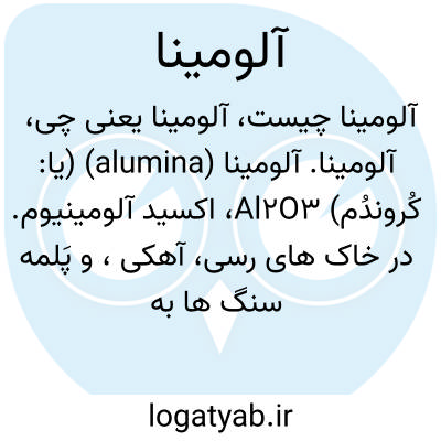 آلومینا. آلومینا (alumina) (یا: کُروندُم) Al۲O۳، اکسید آلومینیوم. در خاک های رسی، آهکی، و پَلمه سنگ ها به فراوانی یافت می شود. براثر تجزیة فلدسپارها در گرانیت تشکیل می شود، و به منزلة ساینده به کار می رود. معمولاً گرد سفیدرنگی است که در بیشتر اسیدهای قوی یا قلیاهای سوزآور حل می شود، اما در آب حل نمی شود. به آلومینای ناخالص «سُنباده» می گویند. یاقوت، یاقوت کبود، و زبَرجَد، سنگ های قیمتی کُروندُم اند.