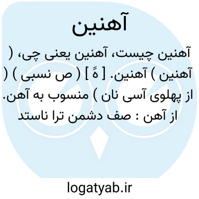 آهنینه: منسوب به آهن، چیزی که از آهن ساخته شده، آهنی، از آهن، به معنی سخت ومحکم ونیرومندمانند آهن