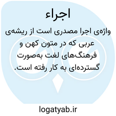 واژه‌ی اِجرا مصدری است از ریشه‌ی عربی که در متون کهن و فرهنگ‌های لغت به‌صورت گسترده‌ای به کار رفته است. در منابع معتبری مانند زوزنی، تاج‌المصادر و منتهی‌الارب معانی متعددی برای این واژه ذکر شده است که از جمله‌ی آن‌ها می‌توان به راندن، براندن، روان‌کردن و بدوانیدن اشاره کرد. این معانی همگی بر مفهوم به حرکت درآوردن یا انتقال چیزی از جایی به جای دیگر دلالت دارند.