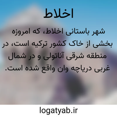 اخلاط. [ اَ ] ( اِخ ) مصحف خلاط، نام شهری به ارمینیه. ( منتهی الارب ). در کنار دریاچه وان و آنرا از اقلیم پنجم محسوب میداشتند. ( مجمل التواریخ والقصص ص 480 ). اخلاط، شهرکیست از ارمینیه خرّم و بانعمت و مردم و خواسته و بازرگانان بسیار و از وی زیلوهای قالی و غیره و شلواربند و چوب بسیار خیزد. ( حدودالعالم ). و رجوع به ذیل جامعالتواریخ رشیدی ص 191 و حبط ج 1 ص 169، 407، 408، 432 و حبط ج 2 ص 184، 198، 348 و روضات الجنات ص 258 شود.