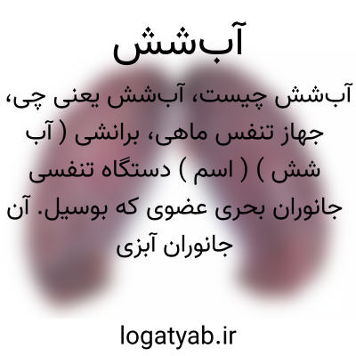 ( آب شش ) ( اسم ) دستگاه تنفسی جانوران بحری عضوی که بوسیل. آن جانوران آبزی ( مانند ماهیها و خرچنگها و نوزاد قورباغه ) اکسیژن محلول در آب را جذب و انیدرید کربنیک بدن را دفع میکنند.