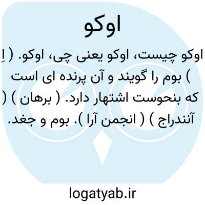 اوکو. ( اِ ) بوم را گویند و آن پرنده ای است که بنحوست اشتهار دارد. ( برهان ) ( آنندراج ) ( انجمن آرا ). بوم و جغد. ( ناظم الاطباء ). || هر مرغ بدشگون. ( ناظم الاطباء ).