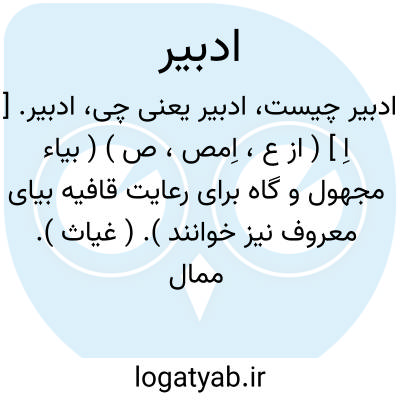 ادبیر. [ اِ ] ( از ع، اِمص، ص ) ( بیاء مجهول و گاه برای رعایت قافیه بیای معروف نیز خوانند ). ( غیاث ). ممال ادبار، بمعنی منحوس، نحوست، بدبختی و غیره. رجوع به ادبار شود: