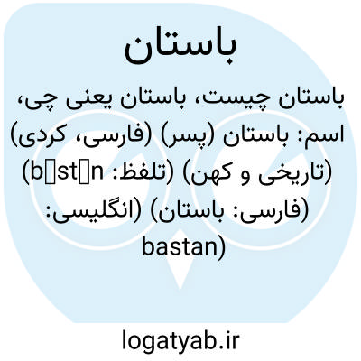 اسم: باستان (پسر) (فارسی، کردی) (تاریخی و کهن) (تلفظ: bāstān) (فارسی: باستان) (انگلیسی: bastan)