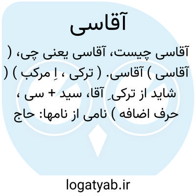 ( آقاسی ) آقاسی. ( ترکی، اِ مرکب ) ( شاید از ترکی ِ آقا، سید + سی، حرف اضافه ) نامی از نامها: حاج میرزا آقاسی.