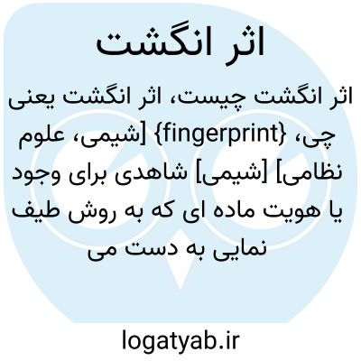 {fingerprint} [شیمی، علوم نظامی] [شیمی] شاهدی برای وجود یا هویت ماده ای که به روش طیف نمایی به دست می آید [علوم نظامی] خطوط و شیارهای خاص انگشتان دست یا پا که در هنگام لمس کردن اشیا روی آنها باقی می ماند و در افراد تفاوت دارد