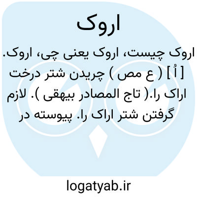 اروک. [ اُ ] ( ع مص ) چریدن شتر درخت اراک را.( تاج المصادر بیهقی ). لازم گرفتن شتر اراک را. پیوسته در شوره بودن. ( تاج المصادر بیهقی ). || رسیدن شتر بهر درخت که باشد و اقامت کردن در خوردن آن. || مقیم شدن. ( زوزنی ) ( تاج المصادر بیهقی ). ایستادن. || به شدن جراحت. بهتر شدن جراحت. ( تاج المصادر بیهقی ). فرونشستن آماس جراحت.