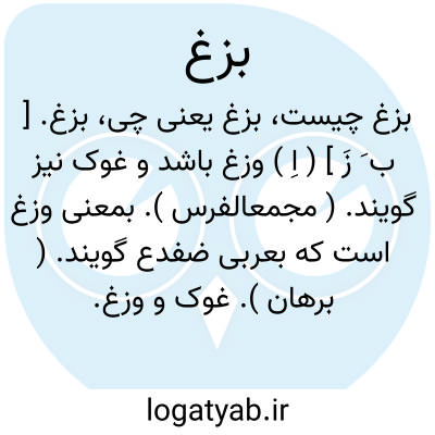 بزغ. [ ب َ زَ ] ( اِ ) وزغ باشد و غوک نیز گویند. ( مجمعالفرس ). بمعنی وزغ است که بعربی ضفدع گویند. ( برهان ). غوک و وزغ. ( ناظم الاطباء ). وزغ است و آنرا بلفظ دری بک و وک گویند. ( آنندراج ). غوک. چغز. ( از فرهنگ اسدی ). کزو. ضفدع. ( مهذب الاسماء نسخه خطی ). مکل. قاس.غنجموش. قورباغه. ( یادداشت بخط دهخدا ):