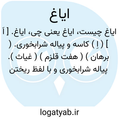 ایاغه: ماخوذا ترکی، جام، ساغر، ساتگین، پیالهای که در آن شراب بخورند