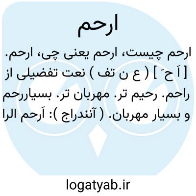 ارحم. [ اِ ح َ ] ( ع فعل امر ) بصیغه امر یعنی رحم کن. ببخشای: اِرْحَم ْ یااَرحم الراحمین؛ ببخشای ای بخشاینده تر بخشایندگان.