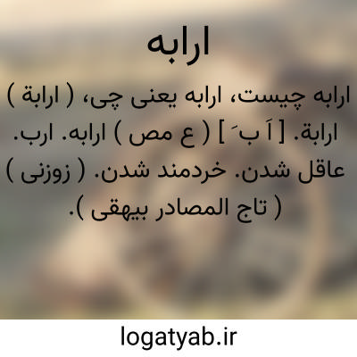 ( ارابة ) ارابة. [ اَ ب َ ] ( ع مص ) ارابه. ارب. عاقل شدن. خردمند شدن. ( زوزنی ) ( تاج المصادر بیهقی ). زیرک شدن. ( صراح ).