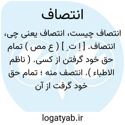 انتصاف. [ اِ ت ِ ] ( ع مص ) تمام حق خود گرفتن از کسی. ( ناظم الاطباء ). انتصف منه؛ تمام حق خود گرفت از آن. ( منتهی الارب ). نصف یافتن. ( غیاث اللغات ). || معجر بر سر افکندن زن. ( منتهی الارب ) ( ناظم الاطباء ) ( آنندراج ). اختمار. ( از اقرب الموارد ). مقنعه بر سر انداختن. || به نیمه رسیدن. ( منتهی الارب ) ( ناظم الاطباء ) ( آنندراج ). به نیمه چیزی برسیدن. ( مصادر زوزنی ) ( فرهنگ فارسی معین ). نصف چیزی را گرفتن. ( از اقرب الموارد ) ( فرهنگ فارسی معین ). || درآمدن تیر در شکار. ( منتهی الارب ) ( ناظم الاطباء ) ( آنندراج ). درآمدن تیر در شکار تا نصف. ( از اقرب الموارد ). || داد ستدن. ( منتهی الارب ) ( ناظم الاطباء ) ( آنندراج ) ( از اقرب الموارد ) ( فرهنگ فارسی معین ). انصاف بستدن. ( مصادر زوزنی ). داد گرفتن. ( فرهنگ فارسی معین ). || به نیمه رسیدن روز. ( از اقرب الموارد ). || داد یافتن. ( غیاث اللغات ). || نیمه شدن. ( غیاث اللغات ). || ( اِمص ) بدونیم شدگی. ( ناظم الاطباء ). نیمه شدن: در وقت انتصاف روز بتیغ انتصاف قرب پنج هزار جیفه کفار بر صحراء آن مصاف طعمه کلاب و نجعه ذیاب گردید. ( ترجمه تاریخ یمینی ص 201 ). || داد ستدن: و قوانین عدل و قواعد انصاف و انتصاف بنوشت. ( سندبادنامه ص 65 ). بعدل و داد معروف و مذکور وبانصاف و انتصاف معین و مشهور. ( سندبادنامه ص 56 ).