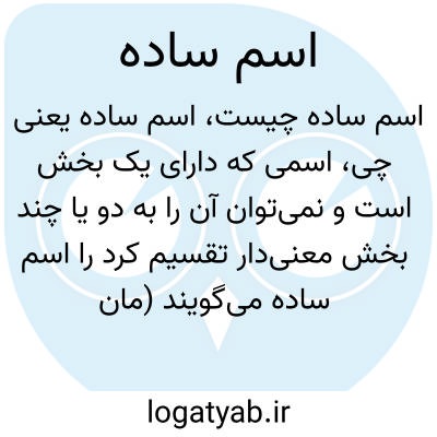 💡 اسم ساده یکی از چهار گروه واژگان فارسی از نظر ساختاری است. این اسم‌ها فقط دارای یک جزء معنی‌دار یا تکواژ آزاد قاموسی بوده و تقسیم پذیر نیستند. مانند: آتش، کبوتر، سیاوش، وجدان، گوسفند و…