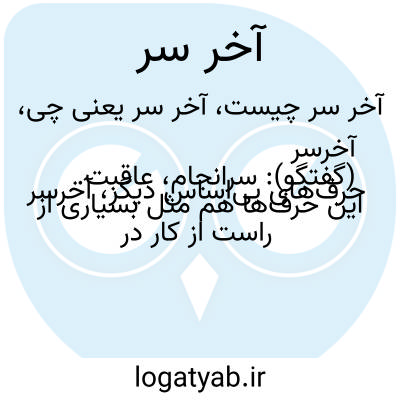 (گفتگو): سرانجام، عاقبت. این حرفها هم مثل بسیاری از حرفهای بیاساس دیگر، آخرسر راست از کار درآمد. «دریابندری