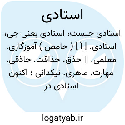خاص کن امروز بدامادیم.نظامی.|| زیرکی. حیله. تدبیر.چاره. مکر: لیکن محمودیان در این کار استادیها میکردند. ( تاریخ بیهقی چ ادیب ص 231 ). از این سفر که به بخارا بود از وی صورت ها نگاشت و استادی ها کرد تا صاحب بریدی از وی بازستدند. ( تاریخ بیهقی ص 362 ). || در اصطلاح کنونی، عالیترین مقام و درجه در تعلیمات عالیه ( دانشگاه ) ایران.