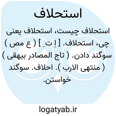 استحلاف. [ اِ ت ِ ] ( ع مص ) سوگند دادن. ( تاج المصادر بیهقی ) ( منتهی الارب ). احلاف. سوگند خواستن. ( زوزنی ). طلب کردن سوگند: خرمیل، بعد از استحلاف ایشان و استیمان از قبل سلطان بیرون آمد. ( جهانگشای جوینی ).