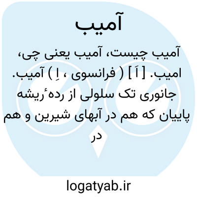 ( آمیب ) ( اسم ) جانور یک سلولی از رد. ریشه پائیان که هم در آبهای شیرین و هم در آبهای دریا میزید حرکت و تغذی. وی بوسیل. پاهای کاذب است. پروتوپلاسم آنها برهنه و بدون پوست. خارجی است.