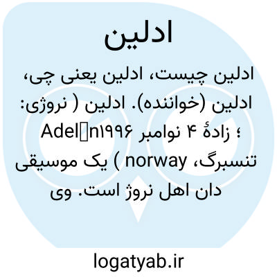 ادلین (خواننده). ادلین ( نروژی: Adelén؛ زادهٔ ۴ نوامبر ۱۹۹۶ تنسبرگ، norway ) یک موسیقی دان اهل نروژ است. وی از سال ۲۰۱۳ میلادی تاکنون مشغول فعالیت بوده است. او همچنین موزیک ویدئویی را برای جام جهانی ٢٠١۴ خواند و مورد علاقه مخاطبین شد