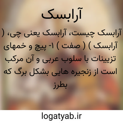 ( آرابسک ) ( صفت ) ۱- پیچ و خمهای تزیینات با سلوب عربی و آن مرکب است از زنجیره هایی بشکل برگ که بطرزی تخیلی سازند. ۲ - تزیینات و ریزه کاری در آهنگ و اثری که ملودی های آن بطرز جالبی بسط یافته باشد.