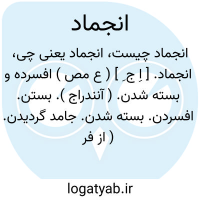 انجماد. [ اِ ج ِ ] ( ع مص ) افسرده و بسته شدن. ( آنندراج ). بستن. افسردن. بسته شدن. جامد گردیدن. ( از فرهنگ فارسی معین ). یخ بستن. ( یادداشت مؤلف ). || ( اِمص ) فسردگی و بستگی. ( ناظم الاطباء ).