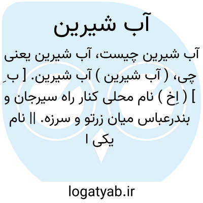 ( آب شیرین ) آب شیرین. [ ب ِ ] ( اِخ ) نام محلی کنار راه سیرجان و بندرعباس میان زرتو و سرزه. || نام یکی از سه آبراهه رود طاب، و آن را آب خیرآباد هم مینامند.