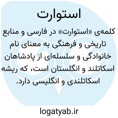 کلمه‌ی «استوارت» در فارسی و منابع تاریخی و فرهنگی به معنای نام خانوادگی و سلسله‌ای از پادشاهان اسکاتلند و انگلستان است، که ریشه اسکاتلندی و انگلیسی دارد. واژه «استوارت» از اصطلاح قدیمی فرانسوی «steward» به معنای سرپرست، مدیر یا ناظر بر امور یک ملک یا دارایی گرفته شده است. در تاریخ اروپا، خانواده استوارت نقش مهمی در حکومت اسکاتلند و سپس انگلستان ایفا کردند و چندین پادشاه و ملکه از این دودمان بر تخت سلطنت نشستند. در متون فارسی و ترجمه‌ها، «استوارت» به عنوان نام خاص خاندان سلطنتی و همچنین به فردی که از این خانواده است، به کار رفته است. این واژه علاوه بر کاربرد تاریخی، گاه به صورت اسم خانوادگی در متون معاصر نیز دیده می‌شود و بار معنایی آن با سلطنت، اقتدار و تاریخ سیاسی اروپا مرتبط است.