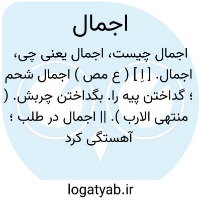 اجمال. [ اِ ] ( ع مص ) اجمال شحم؛ گداختن پیه را. بگداختن چربش. ( منتهی الارب ). || اجمال در طلب؛ آهستگی کردن در طلب و افراط نکردن. ( منتهی الارب ). || اجمال شی ٔ؛ گرد آوردن آن بعد از پراکندگی. ( منتهی الارب ) ( تاج المصادر ). || اجمال حساب؛ جمله کردن آن. ( منتهی الارب ). || اجمال کار؛ نیکو کردن صنیعة. نیکو کردن کار و بسیار کردن آن. ( منتهی الارب ). || بسیارشتر شدن مرد. ( منتهی الارب ). بسیارشتر شدن. ( تاج المصادر ). || خوبی کردن. ( منتهی الارب ) ( تاج المصادر ). || اجمال بدو معنی است: 1 - معرفت و شناختن که امور چندی را محتمل و شامل شود. 2 - سخن بطرز مبهم ادا کردن. ( تعریفات ). || ضد تفصیل.