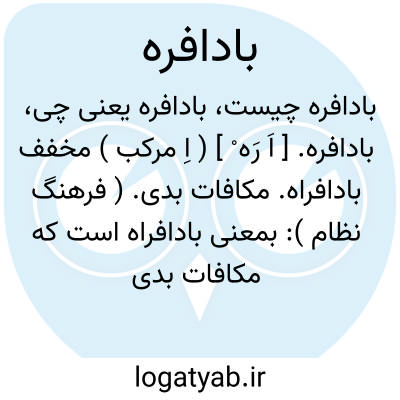 بادافره. [ اَ رَه ْ ] ( اِ مرکب ) مخفف بادافراه. مکافات بدی. ( فرهنگ نظام ): بمعنی بادافراه است که مکافات بدی باشد. ( برهان ). مکافات بدیست. ( آنندراج ). عقوبت و مکافات و انتقام و سیاست. ( ناظم الاطباء: بادافراه ):