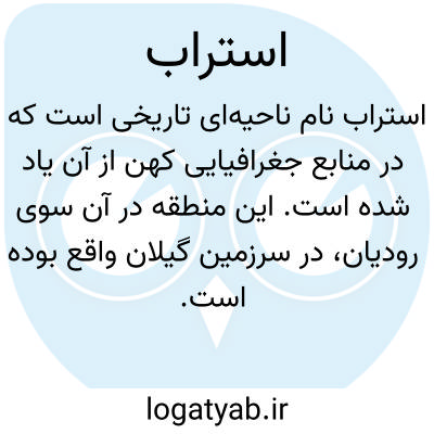 استراب. [ ] ( اِخ ) نام ناحیتی است از آنسوی رودیان بگیلان. ( حدودالعالم ).