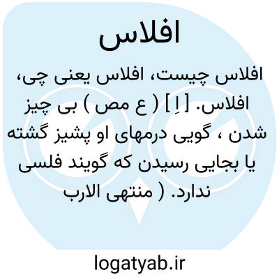 ز افلاس گو ستاره میباشم بر آسمان.رضی نیشابوری.عشق از افلاس می گیرد نمک.عطار.افلاس عنان از کف تقوی بستاند.( گلستان ).- افلاسخانه. رجوع به همین عنوان شود. - افلاس خر. رجوع به همین عنوان شود. || در اصطلاح حقوقی فقهی تعابیر مختلف از آن بعمل آمده که همه آنها در اصل عدم توانائی فرد در تأدیه آنچه در ذمه او است متفق هستند. در قانون موقتی اصول محاکمات حقوقی، از افلاس بعدم تمکن محکوم علیه نسبت بتأدیه محکوم به تعبیر شده و در قانون دیگر افلاس را عدم کفایت دارایی شخص برای پرداخت مخارج عدلیه و یا بدهی او تعریف کرده و در قانون مرادف با ورشکستگی قرارگرفته و سرانجام افلاس در تحت تعریف کلی اعسار قرار گرفته و افلاس بمعنی خاص اصطلاحی منسوخ گردیده است. رجوع به قانون آئین دادرسی مدنی و قانون تجارت شود. و در فقه افلاس عبارتست از میان رفتن بیشتر دارایی و باقی ماندن مقدار ناچیز آن، چنانکه گفته اند: المفلس من ذهب خیار ماله و بقی فلسه. و در واقع مفهوم حقیقی فقهی آن است که دارایی شخص تکافوی تأدیه بدهی نکند، بتعبیر دیگر دارائیش از بدهی او کمتر باشد. رجوع به کتاب شرایعالاسلام شود.