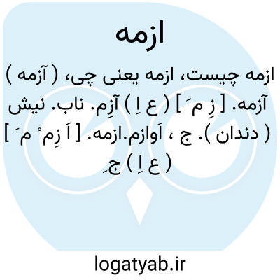 ( آزمه ) آزمه. [ زِ م َ ] ( ع اِ ) آزِم. ناب. نیش ( دندان ). ج، اَوازم.