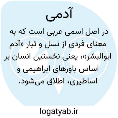( آدمی ) آدم، انسان: تو کز محنت دیگران بی غمی / نشاید که نامت نهند آدمی (سعدی: ۶۶ ).