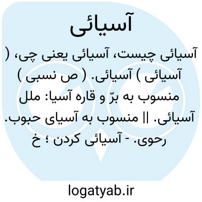 ( آسیائی ) آسیائی. ( ص نسبی ) منسوب به برّ و قاره آسیا: ملل آسیائی. || منسوب به آسیای حبوب. رحوی.
