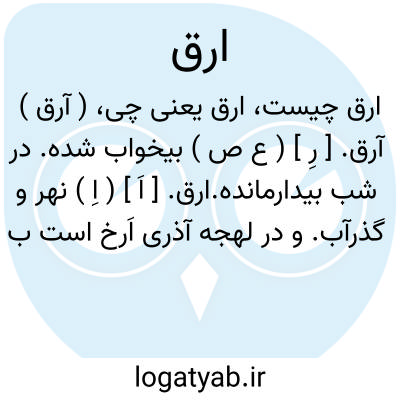 ارق.[ اَ رِ ] ( ع ص ) بیخواب. بیخواب شده. بیدار. آرِق.