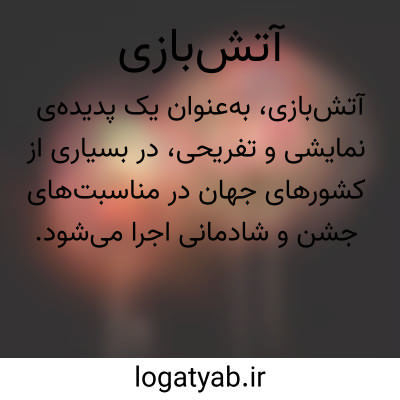 آتش بازی. آتش بازی کاری تفریحی و نمایشی است که در برخی از کشورها در جشنها و شادمانی ها انجام می گیرد.