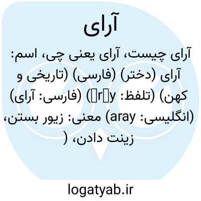 اسم: آرای (دختر) (فارسی) (تاریخی و کهن) (تلفظ: ārāy) (فارسی: آرای) (انگلیسی: aray)