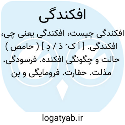 افکندگی. [ اَ ک َ دَ / دِ ] ( حامص ) حالت و چگونگی افکنده. فرسودگی. مذلت. حقارت. فرومایگی و بندگی و کوچکی. سقوط از بالا: